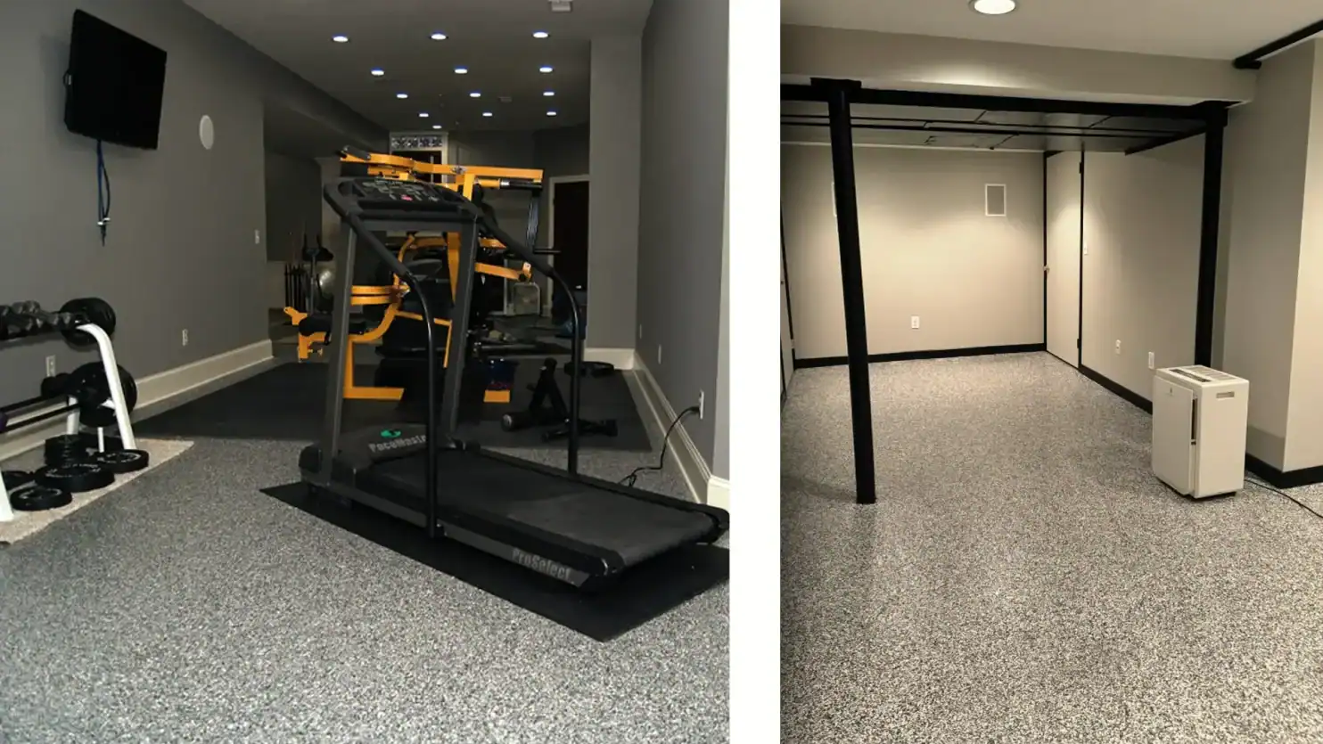 Once the floor is finished, the basement stops being a problem space and starts becoming usable square footage. Home gym, playroom, office, or media space. A basement floor coating gives you the flexibility to actually use the room instead of working around it.